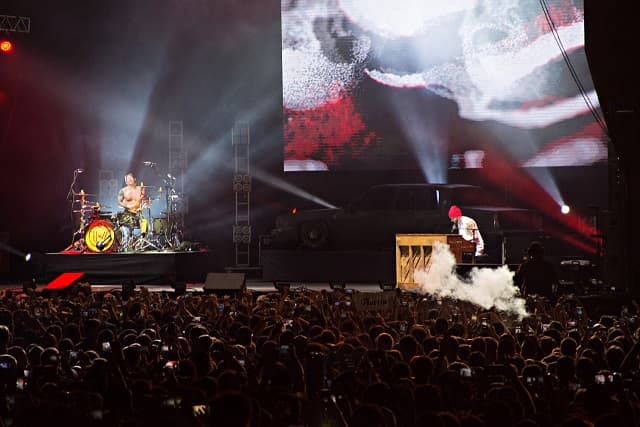 “Stressed Out”, “Ride”, “We Don't Believe What's On TV” y el último éxito “Chorine”, no pudieron faltar a la velada. Cerca del final se dio una nueva perla del grupo, cuando Tyler subió a lo más alto de una de las torres que del escenario. Fue algo inesperado que cautivó a las miles de almas presentes.