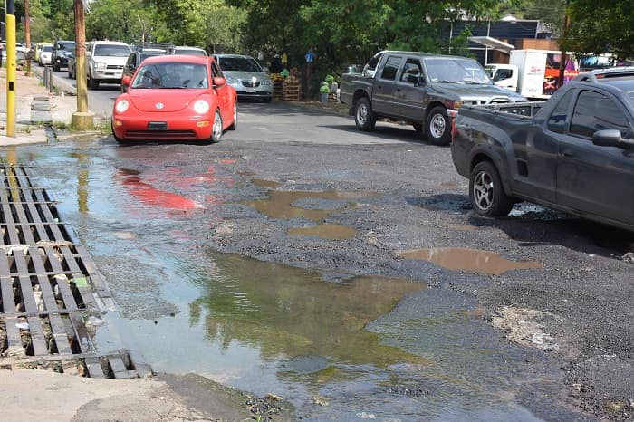 A lo largo y ancho de esta extensa avenida, uno se puede sorprender de los cráteres que se forman, cada vez que las lluvias caen sobre el territorio nacional. Algunos son “señalizados” con ruedas o palos para que los conductores al llegar a la zona no caigan en los baches y ocurra algún accidente que lamentar.