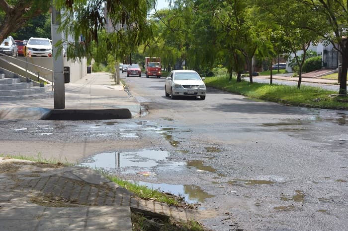 Desde su inicio en su cruce con la Avenida del Agrónomo hasta su continuación como Dr. Luis M Argaña, que culmina en Acceso Sur, la capa asfáltica está minada de baches, pozos y espejos de agua servida que ocultan las profundidades de los cráteres de la zona.
