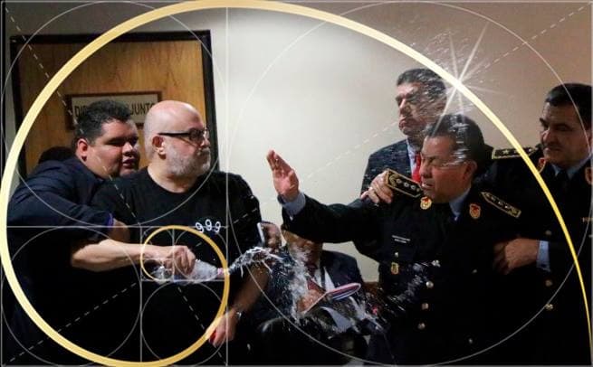 La foto del agua contra el comisario fue una de las más usadas para los memes.