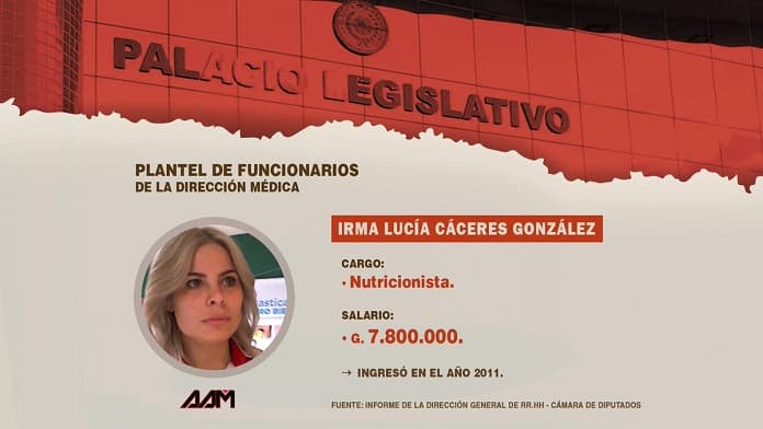 Irma Lucía Cáceres González es una de las tantas nutricionistas del “mini hospital”. Su salario es de G. 7,8 millones e ingresó en 2011.