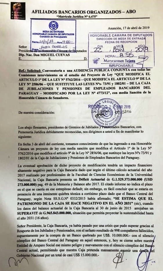 Según los antecedentes, son unos G. 96.350.243.422, que debían ser pagados por el Ministerio de Hacienda a los jubilados debido al salvataje de la Caja Bancaria en su crisis financiera, hecho años atrás. El proyecto de ley pretende trasladar la carga a la Caja.