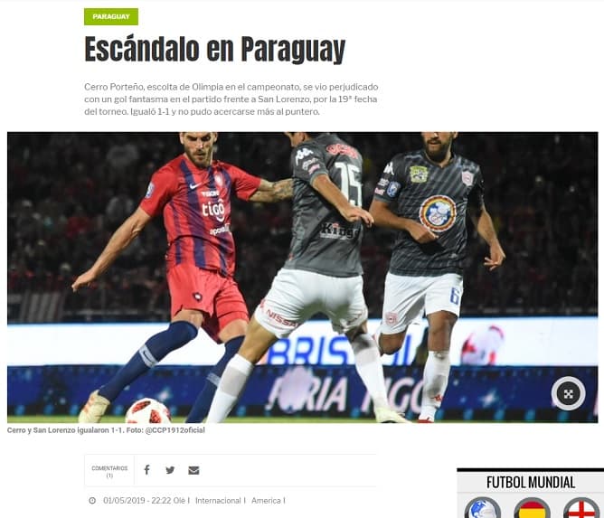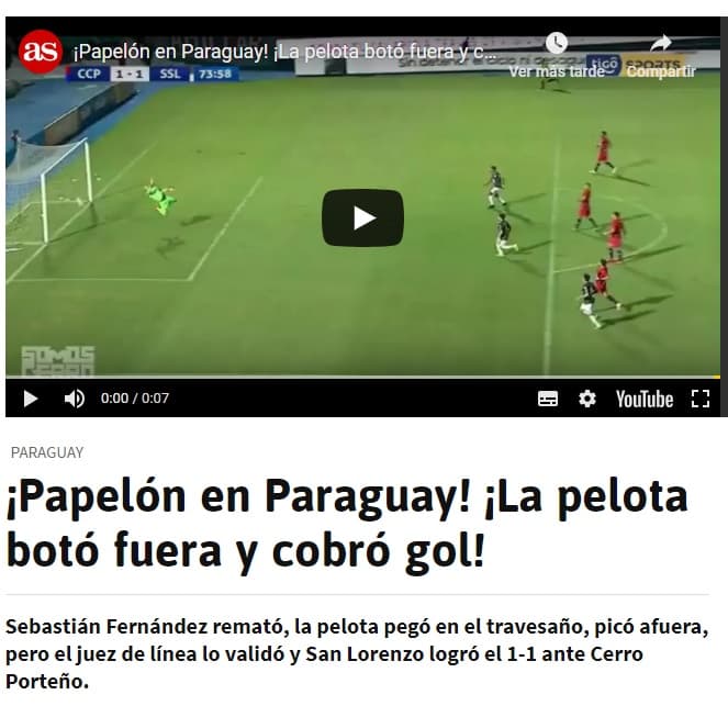 El renombrado diario deportivo AS, de España tituló: ¡Papelón en Paraguay! ¡La pelota botó fuera y cobró gol!.