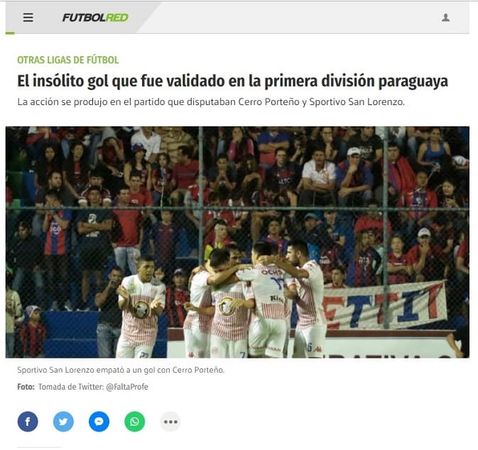 El portal colombiano de deportes, FutbolRed tituló: El insólito gol que fue validado en la primera división paraguaya.