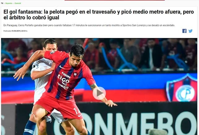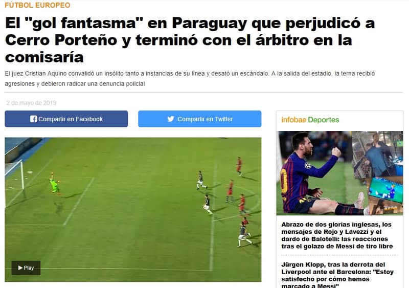 El portal Infobae, en su edición regional, califica de gol fantasma al tanto del Rayadito.