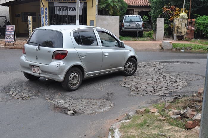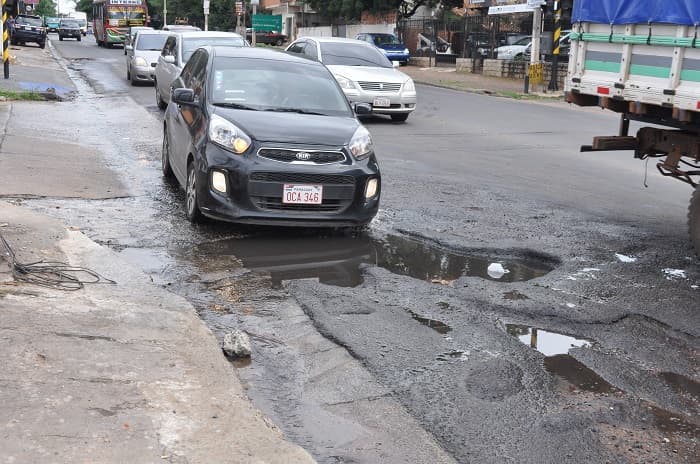 Evitar baches al conducir un vehículo se volvió una especie de misión imposible. Francisco Acuña de Figueroa casi Teniente Coronel Fulgencio Yegros.