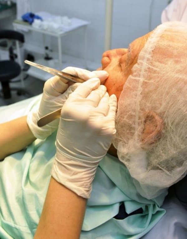 Las lesiones más pequeñas (diámetro 6 mm) deben extirparse quirúrgicamente con un margen inicial de 3 ó 4 mm. No obstante, si las lesiones son demasiado grandes como para extirparlas, el profesional médico debe tomar muestras de biopsia para proceder a su examen histológico.