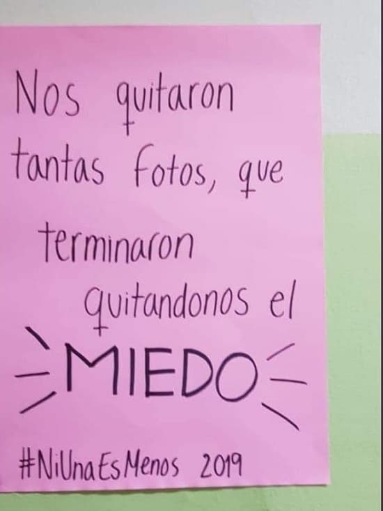 Uno de los carteles en reclamo por el hacho, indica: “Nos quitaron tantas fotos que terminaron quitándonos el miedo”.
