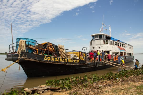 Sin dudas, la forma más popular para trasladarse hasta Bahía Negra es a través del Aquidabán, un barco que a su vez funciona como “mercado flotante” debido a la cantidad de productos que allí se trasladan todas las semanas.