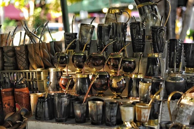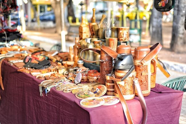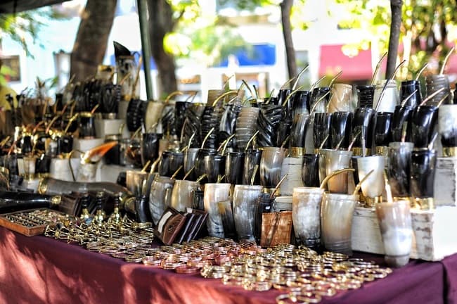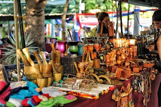 En el lugar se observa guampas hechas de madera, bombillas de alpaca, camisas de ao po'i, billeteras de cuero, termos forrados, trabajos de joyería, y mucho más.