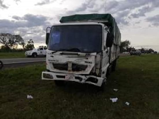 El otro vehículo volcado es un camión que era guiado Omar Bianchetti Muller de 26 años de edad, oriundo de Encarnación, quien manifestó que la motocicleta le salió al paso y debido a eso se produjo el impacto.