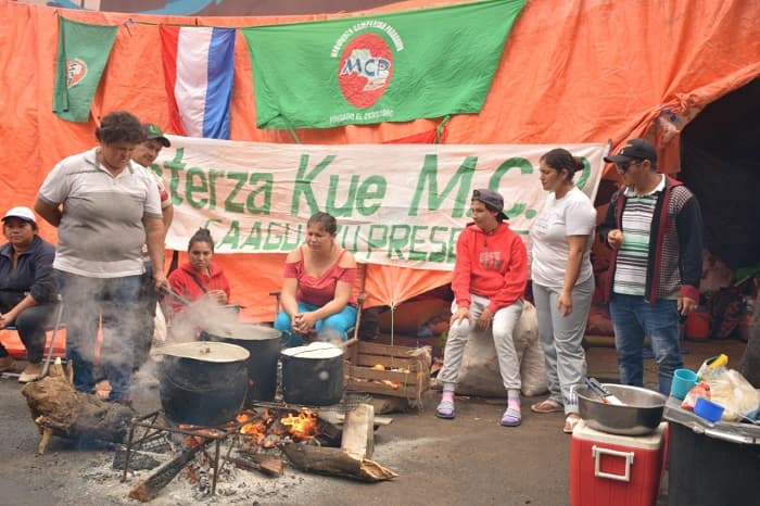 Los 3.000 campesinos e indígenas apostados en Asunción provienen de 13 departamentos del país, e integran ocho movilizaciones que conforman la Coordinadora Nacional Intersectorial.