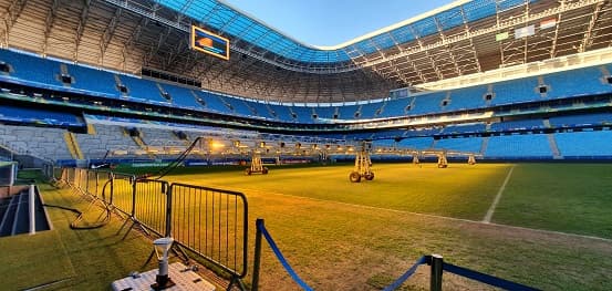 El campo del Gremio, de Porto Alegre, donde se jugará el duelo no presenta las mejores condiciones en su gramado.