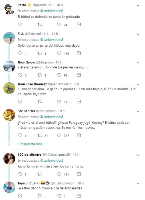 El defensor colombiano, Carlos Valdés, menospreció el partido de Paraguay ante Brasil, desde su cuenta de Twitter y muchos le respondieron con fuertes críticas.