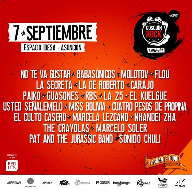 La segunda edición del Cosquín Rock, en su versión paraguaya, ya tiene a los grupos que darán realce al evento este año. Encabezan el cartel de estrellas bandas como No Te Va Gustar, Babasónicos y Molotov, entre otros.