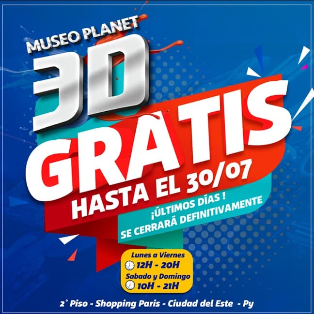 “Hasta el 30 de julio, el increíble Museo no cobrará las entradas a nadie... ¡Invítale a tus amigos, primos, hermanos, tíos... a tooodos y vení a vivir la experiencia en 3D!”, invita.