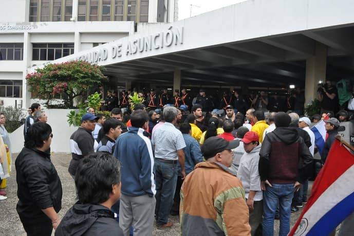 Finalmente, luego obstaculizar el tránsito vehicular llegaron hasta la Municipalidad de Asunción exigiendo una regulación para las aplicaciones Uber y MUV.
