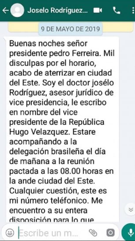 En la tarde de este viernes, salieron a luz más detalles de los mensajes enviados por el abogado José Rodríguez al por entonces presidente de la Ande, Pedro Ferreira.