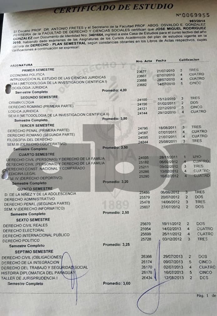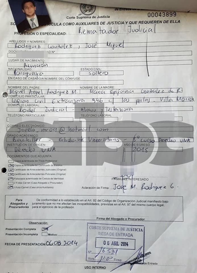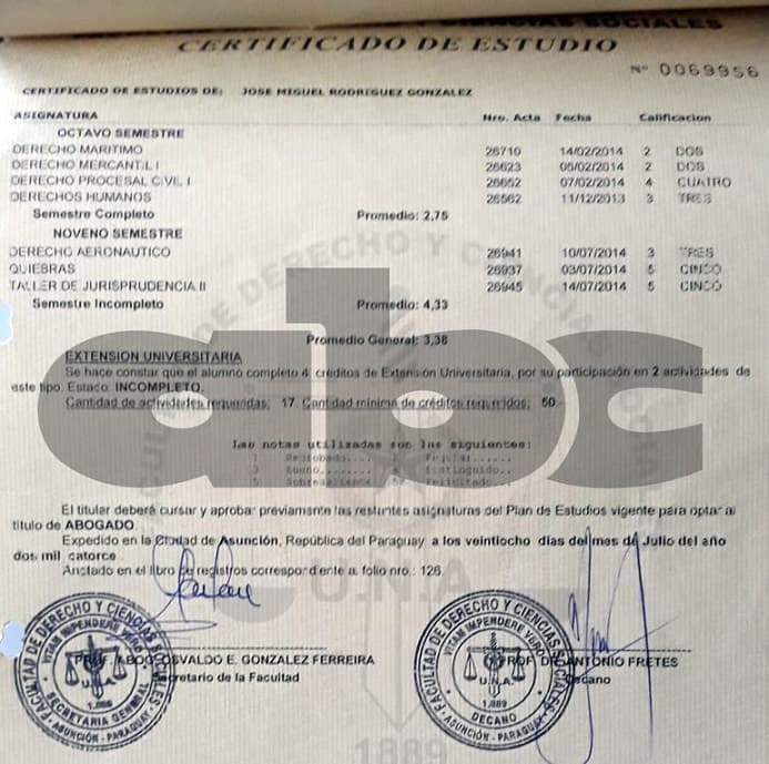 Los documentos señalan que Rodríguez cursó hasta el noveno semestre de su carrera universitaria. Según él, era el representante de una empresa brasileña que buscaba hacerse se energía de la Ande, para comercializar en el país vecino.