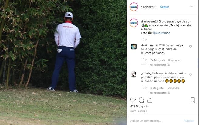 “El oro paraguayo de golf no se aguantó. ¿Tan lejos estaba el baño?”, publicó en su cuenta de Instagram el diario Perú 21.