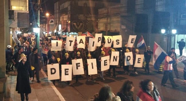 Las movilizaciones se efectúan a causa de la firma del acuerdo secreto, del 24 de mayo, entre las cancillerías de Paraguay y Brasil.