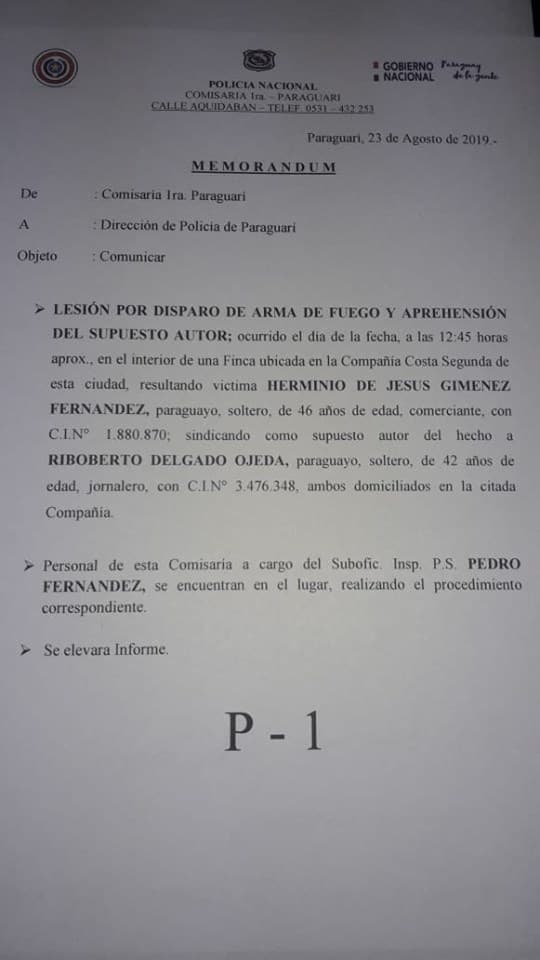 El director policial del departamento de Paraguarí, el comisario Gaspar Mereles, narró que el hombre fue asesinado en su propiedad, cuando se estaba por ejecutar un desalojo.
