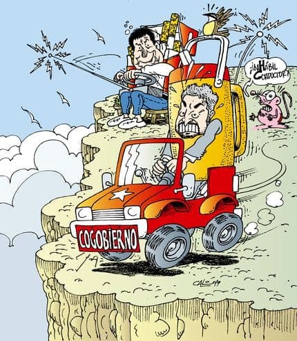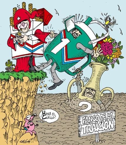 De acuerdo a esta caricatura, Velázquez es quien sostiene a Abdo Benítez.
