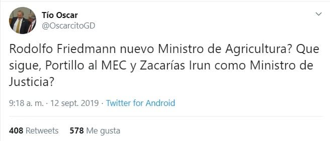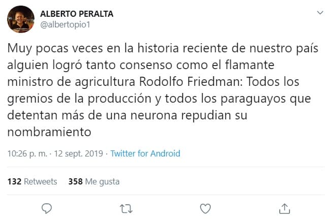 El Presidente de la República Mario Abdo Benítez decidió designar como ministro de Agricultura y Ganadería a Rodolfo Friedmann.