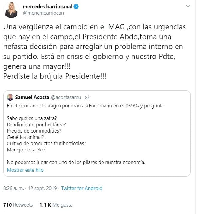 La popular Menchi Barriocanal también se mostró indignada en Twitter.