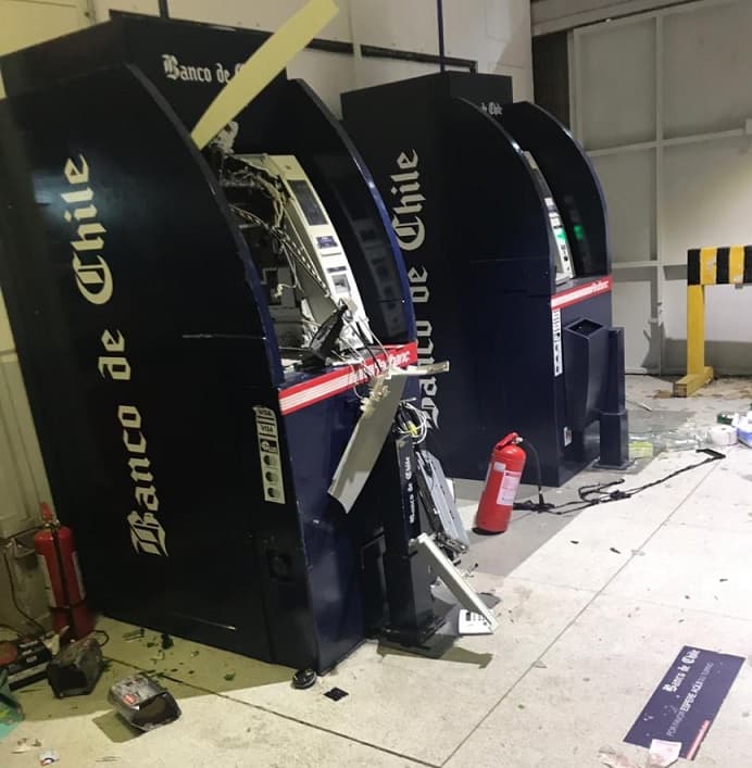 Cajeros automáticos dañados por manifestantes.