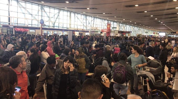En el aeropuerto de Santiago llegaron a dormir unas 5 mil personas, en la noche del sábado y madrugada del domingo.