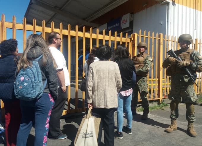 Supermercados y mercados abren con resguardo militar en Concepción.