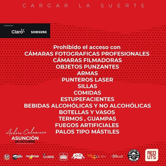Andrés Calamaro visitó nuestro país, por última vez en julio de 2017, cuando brindó su concierto más íntimo en el Gran Teatro del Banco Central del Paraguay.