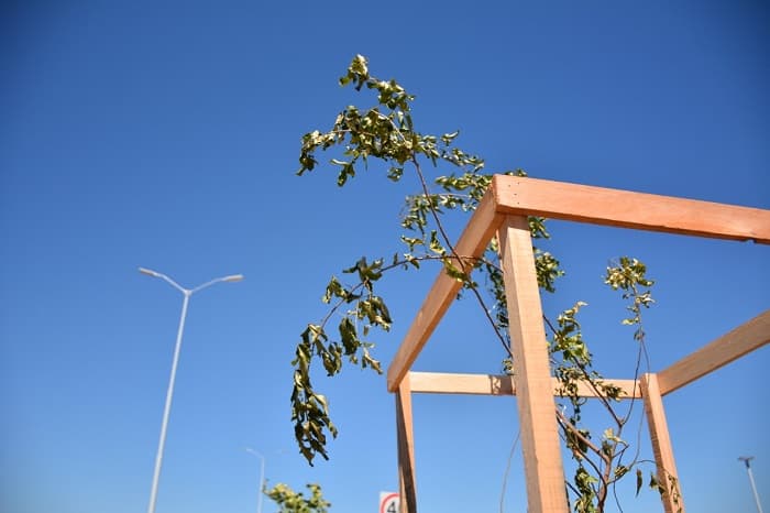 Los árboles tienen protectores de madera sustentable y contarán con un cartel para identificar el nombre científico y popular de la especie.