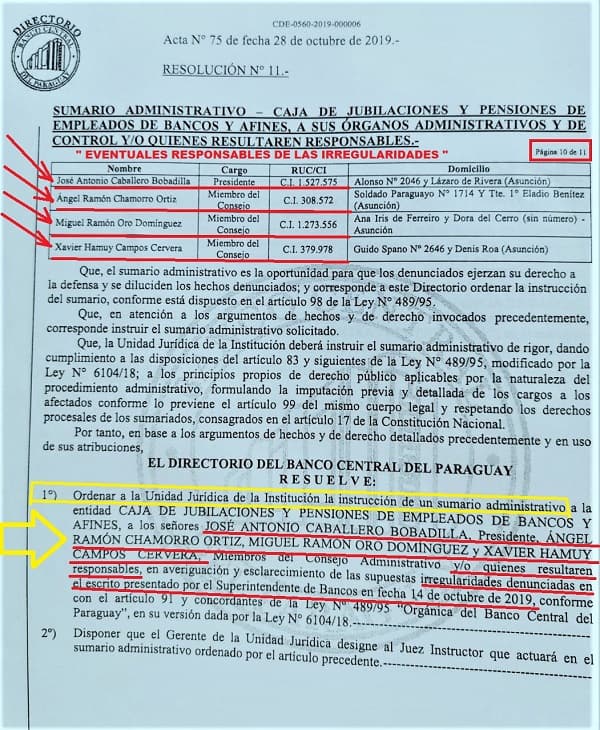 El sumario administrativo se da contra la Caja Bancaria y sus administradores, el presidente José Antonio Caballero Bobadilla y a los miembros del Consejo de Administración, Ángel Ramón Chamorro Ortiz, Miguel Ramón Oro Domínguez y Xavier Hamuy Campos Cervera.
