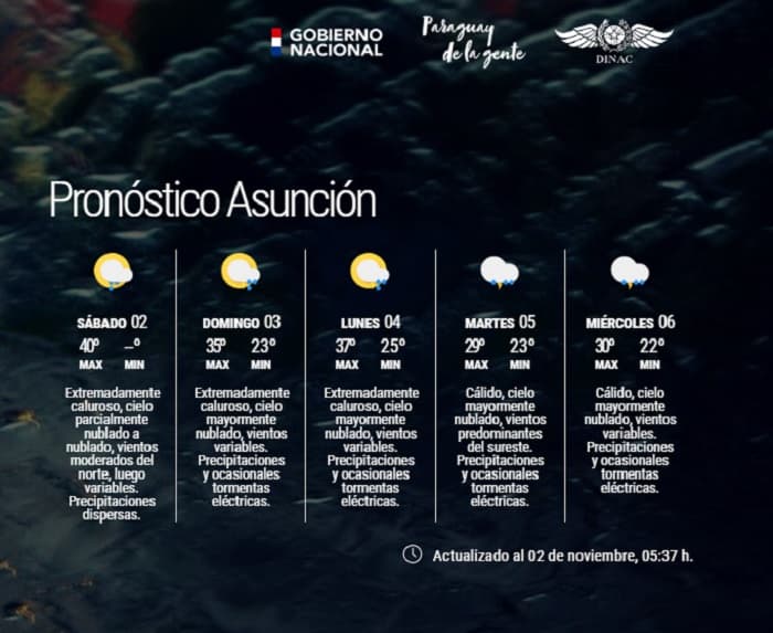 Meteorología aguarda tormentas para el sur de nuestro país, que luego se extenderán hacia el centro, norte y Chaco paraguayo. El calor extremo persistirá con 40° de máxima.