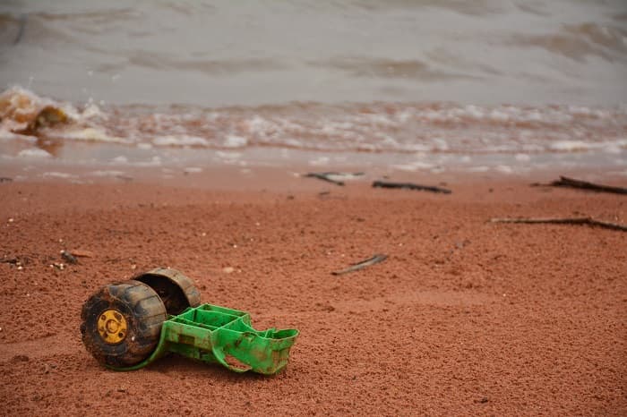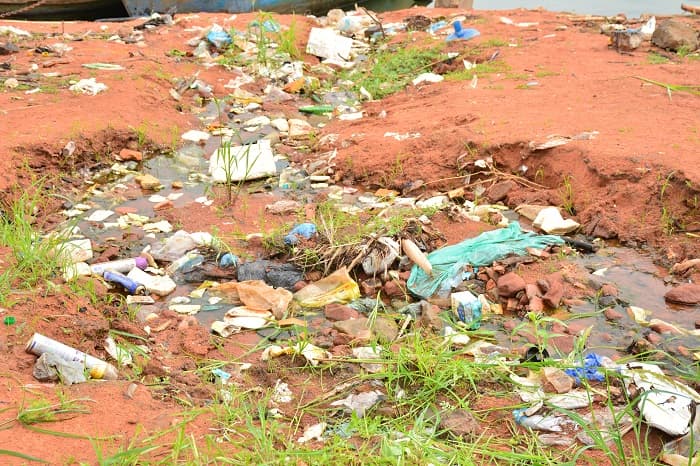 Todo tipo de materiales de plástico, incluso juguetes, se encuentran cerca del río.