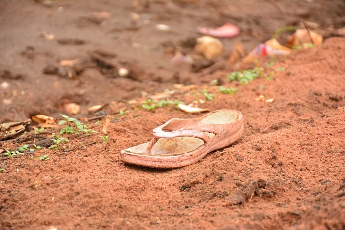 Zapatillas, zapatos y otros objetos personales conviven con la naturaleza. Todo estaba escondido por las aguas del río que en mayo llegó a su punto más alto.
