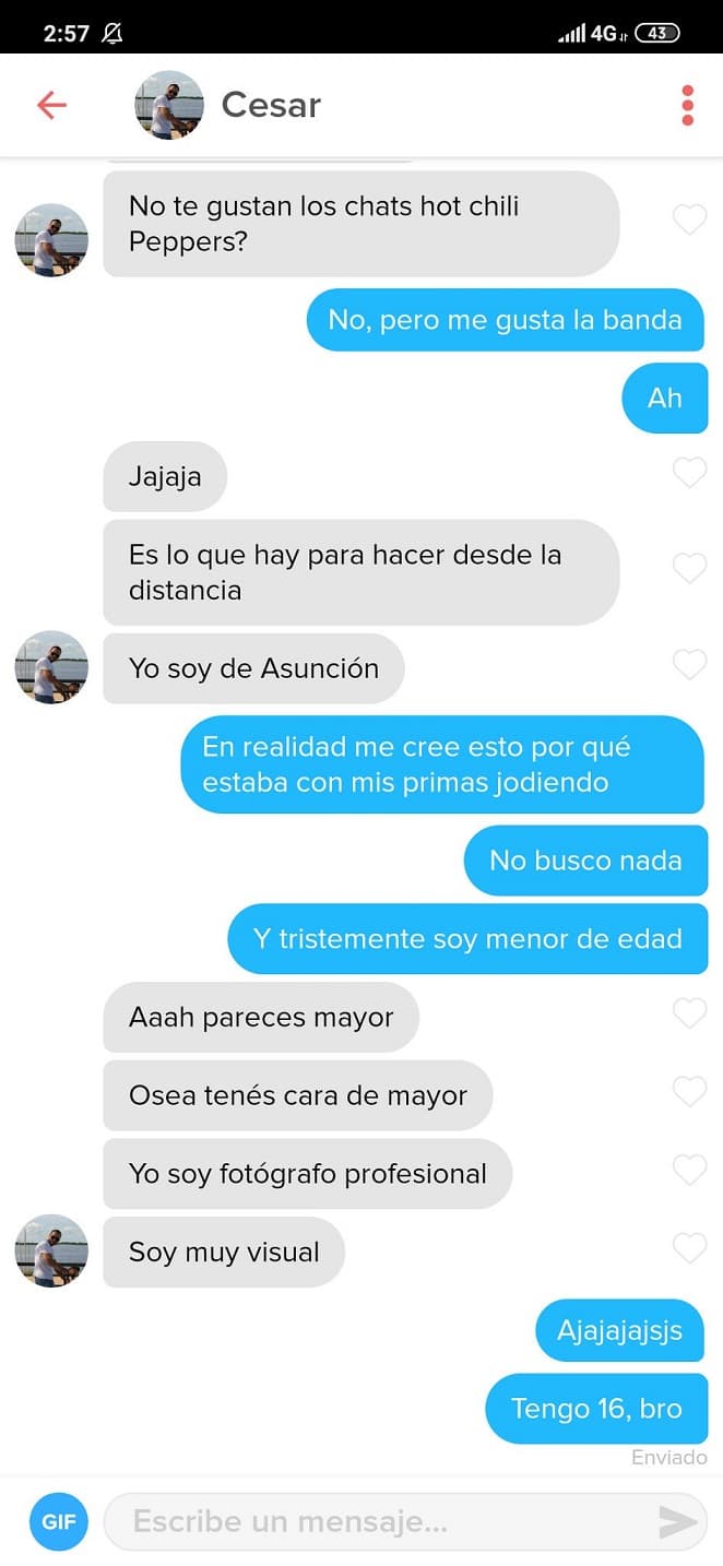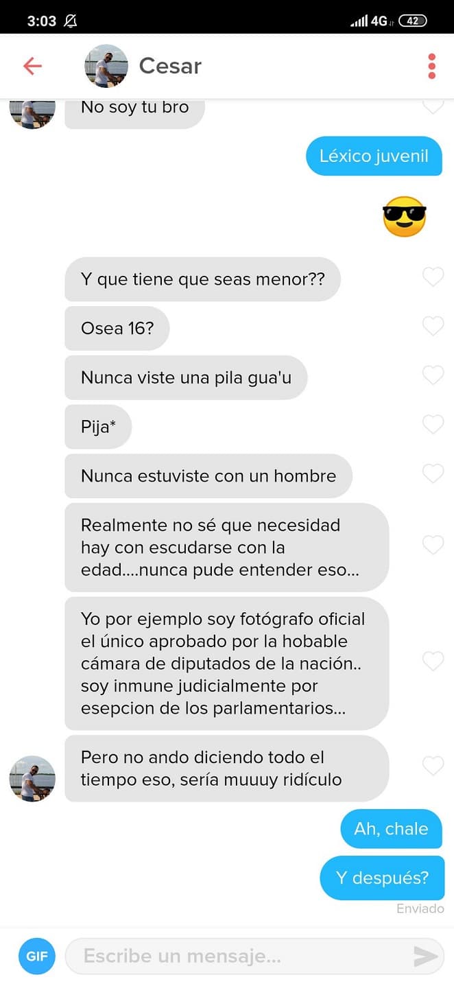 Durante el fin de semana se viralizó el chat entre un hombre, de 34 años, y una adolescente, de 16 años, en la plataforma Tinder.