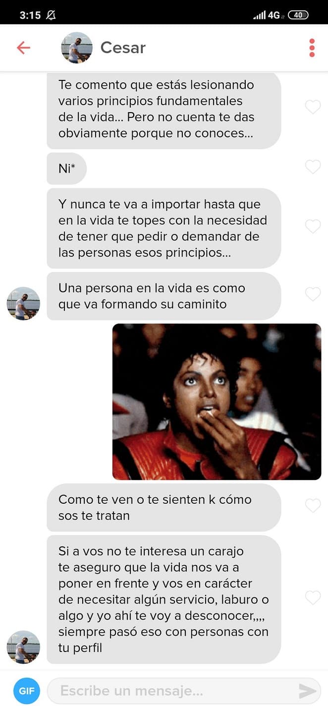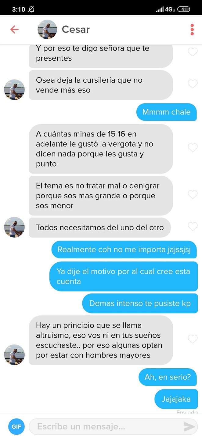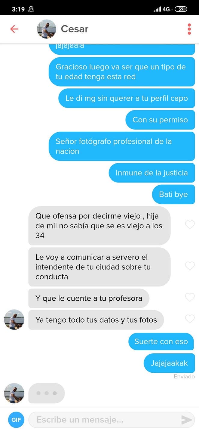 La adolescente le fue esquiva a lo que él respondió con amenazas como “le voy a comunicar a servero (sic) el intendente de tu ciudad sobre tu conducta”. Siguió lanzando: “Y que le cuente a tu profesora, ya tengo todo (sic) tus datos y tus fotos”.