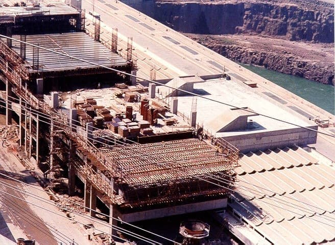 Aquí se puede ver parte de la construcción del Edificio de Producción de la hidroeléctrica, en la década de los años 90.