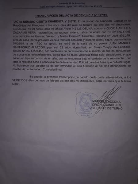La mujer denunció el hecho ante el Juzgado de Paz de San Roque, en Asunción, sin embargo, según su versión, no se dio curso al proceso ya que le dicen que están de huelga o que le falta algunas firmas a su documento.