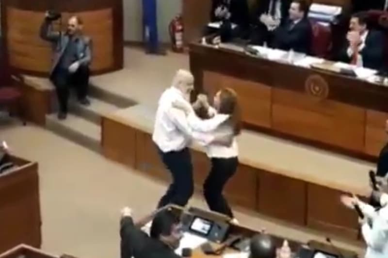 El senador Paraguayo “Payo” Cubas volvió a protagonizar una pelea dentro del ámbito legislativo, pues se trenzó con su colega Fernando Lugo y hasta arrojó agua al comandante de la Policía Nacional.