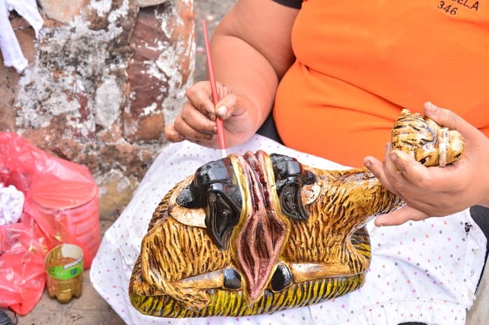 Los vendedores son los mismos artesanos que dan forma a estas esculturas muy solicitadas a esta altura del año. Incluso retocan de vez en cuando mientras realizan su venta.