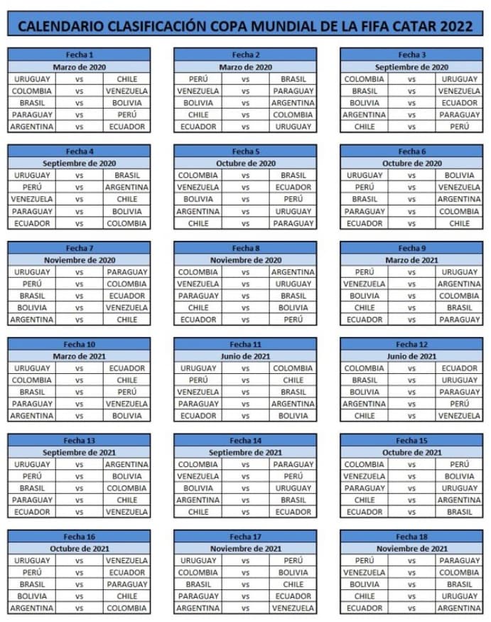La Albirroja comenzará su senda en marzo de 2020 ante Perú de local y culminará ante el mismo equipo, pero de visita en noviembre de 2021.
