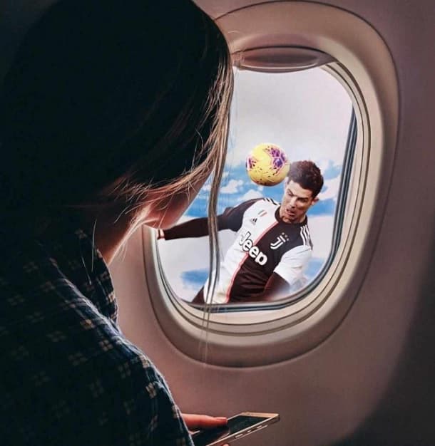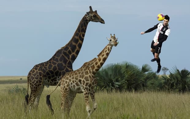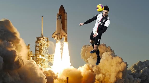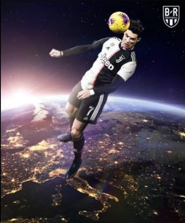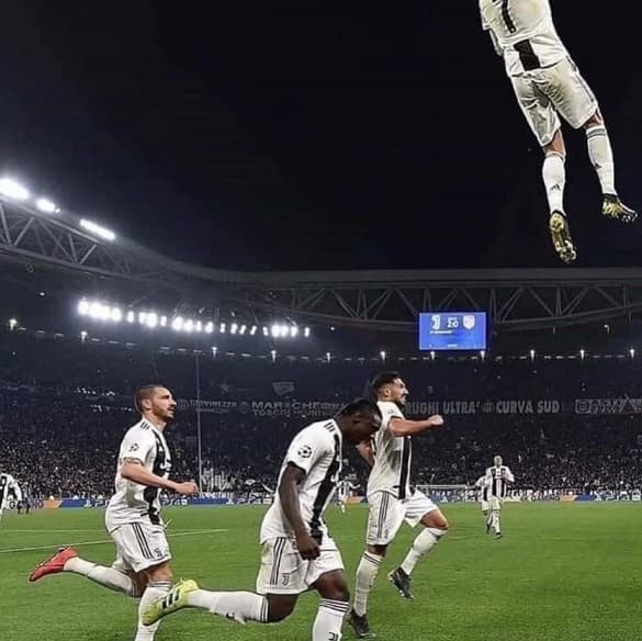 Saltando, Cristiano deja de entrar en el cuadro del festejo.