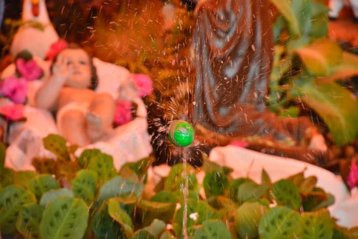 “Esto empezó mi finado padre acá en el mismo lugar sobre una mesa, bajo esta misma parralera. Al principio fue un pesebre modesto. La sagrada familia y algunos animalitos, con el transcurrir de los años fue creciendo, siendo esta pelotita el primer objeto móvil del pesebre, colocado 10 años después”, relató el Ing. Esteban Germán Sabaté.