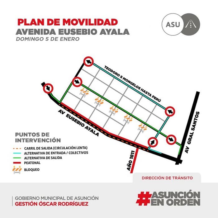 En este sentido, la avenida Eusebio Ayala, desde Gral. Elizardo Aquino hasta Gral. Santos, se convertirá en peatonal en su carril de entrada a Asunción, según informó ABC Color.