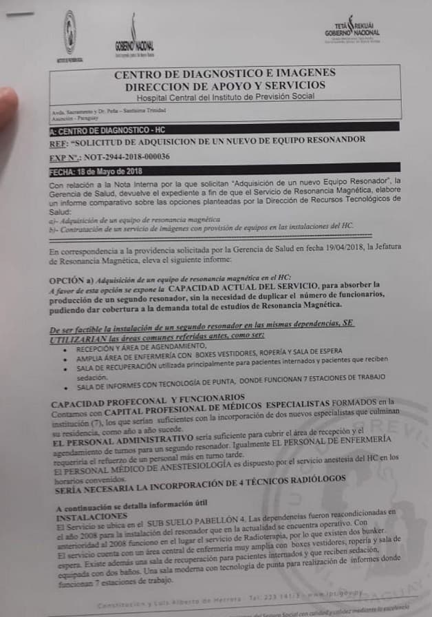 Según los documentos a los que accedió RDN, desde 2018 se viene pidiendo la adquisición de equipos para el Hospital Central, sin embargo dichas compras no se concretan.