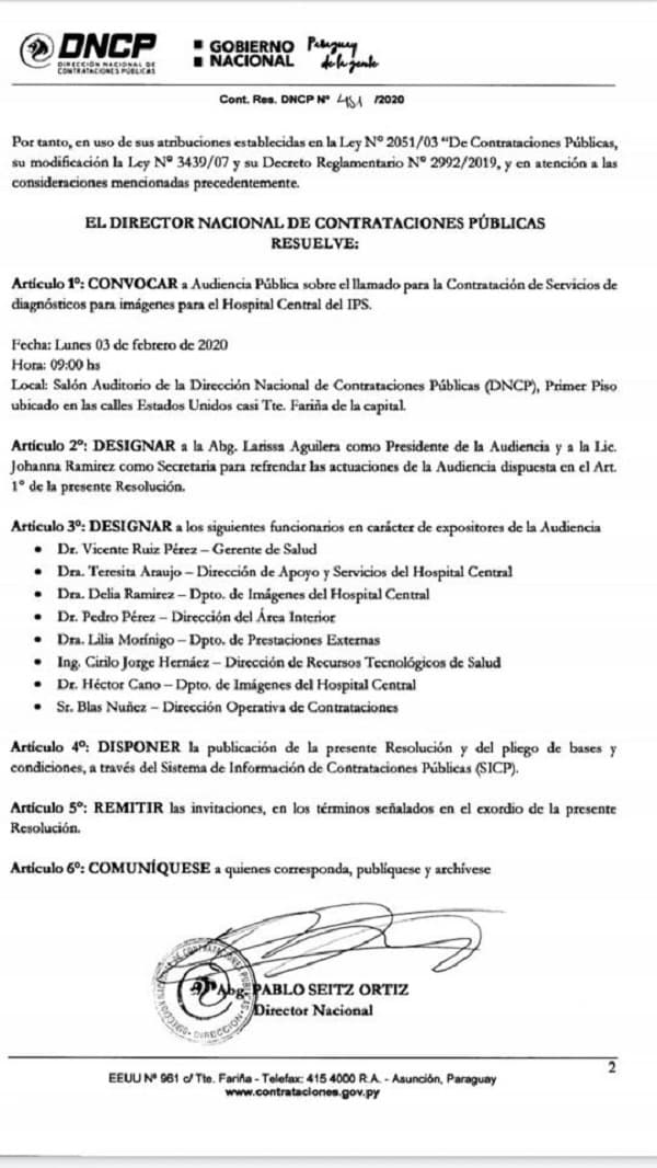 La convocatoria es para el lunes 3 de febrero a las 09:00 en el salón auditorio de la Dirección Nacionbakl de Contrataciones Públicas ubicado en las calles Estados Unidos y Teniente Fariña.